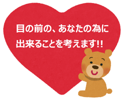 私たちのモットーは、「求められたなら、その⼈のためにできることを120%考える。」ということ。すべての⼈のためにはできないけれど、⽬の前に、私たちを必要とする⼈がいるならば、その⼈のお役に⽴てるよう最善を尽くすことだけは約束できます。