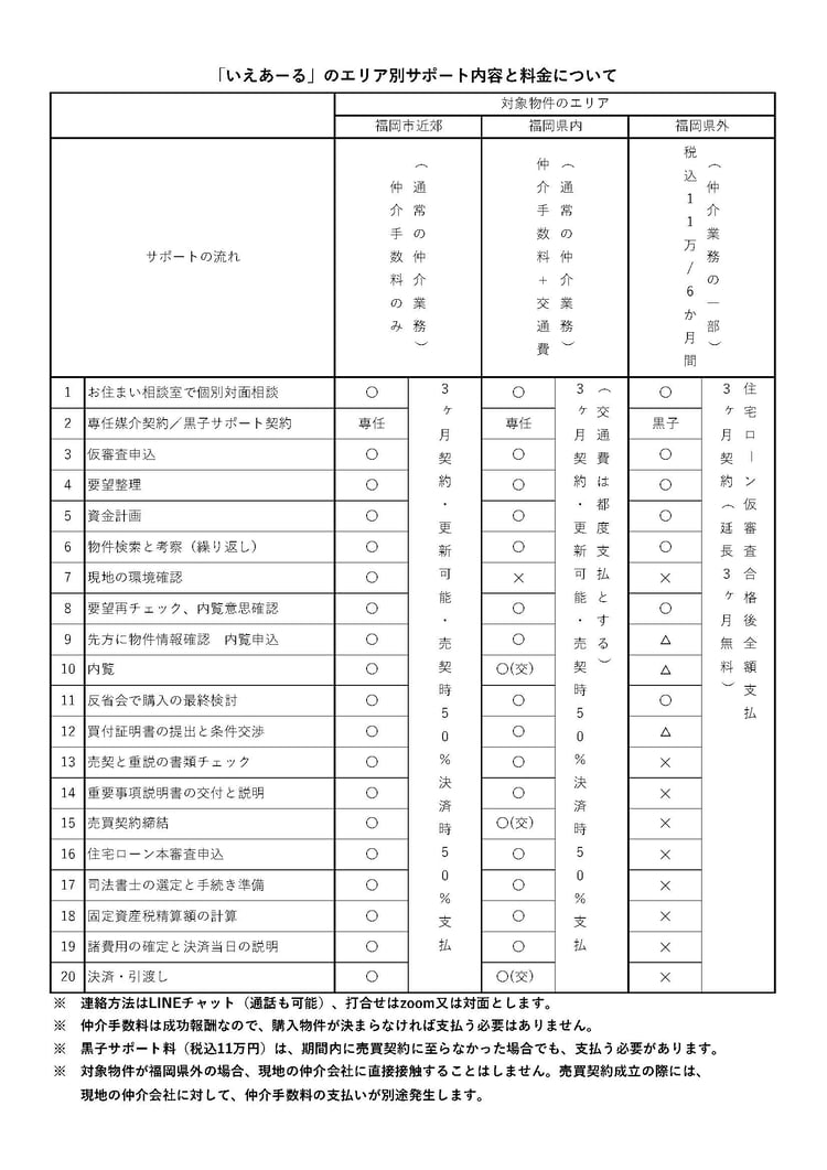 ● 購入対象エリアが福岡市近郊の場合は、対面で仲介が可能です。その場合の料金は仲介手数料のみです。